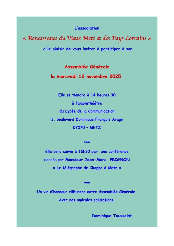 le samedi 11 octobre 2025 à 15h00 au Lycée de la Communication 3, boulevard Dominique François Arago 57070 Metz. Entrée libre et gratuite dans la limite des places disponibles.