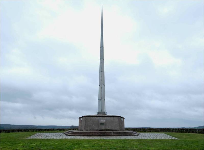 Après guerre, il fallut attendre vingt ans (1968) pour qu’un nouveau projet voit le jour (l’actuelle flèche en acier de même hauteur) et pérennise la mémoire des victimes tchèques et slovaques morts au combat (en Alsace, Champagne et Ardennes). Un wagon fut adjoint au monument (il n’était pas présent en 1938) pour rappeler que ce fut le moyen de transport utilisé pour véhiculer les engagés tchèques et slovaques en France durant la Première Guerre. La mémoire de l’événement, plus que centenaire, a tellement marqué les esprits tchécoslovaques, que le président Vaclav Havel décréta, en 2002, le 30 juin de chaque année, jour de la fête des armées.
