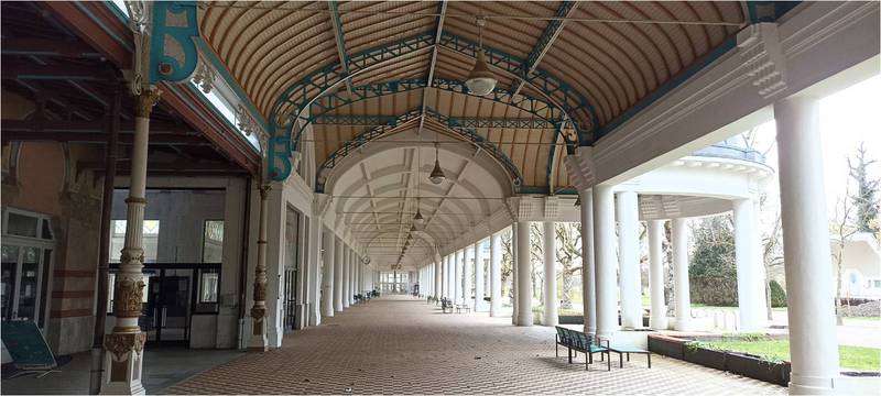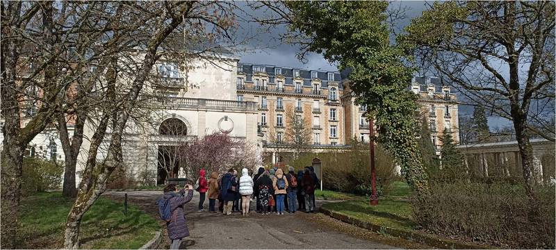 L’afflux de curistes amena des investisseurs à doter la ville d’hôtels, de lieux de détente et de loisirs dont l’architecture s’inspira des courants artistiques en vigueur aux époques traversées. Un très grand parc (650 ha) fut aménagé. Plusieurs sources (source Félicie, Bonne Source, Source Hépar et Grande Source) permettent toujours aux curistes de bénéficier d’eaux aux propriétés spécifiques. Une eau aussi mise en bouteille. Le parcours-découverte se déroula en toute quiétude étant donné que la saison n’était pas encore commencée.
